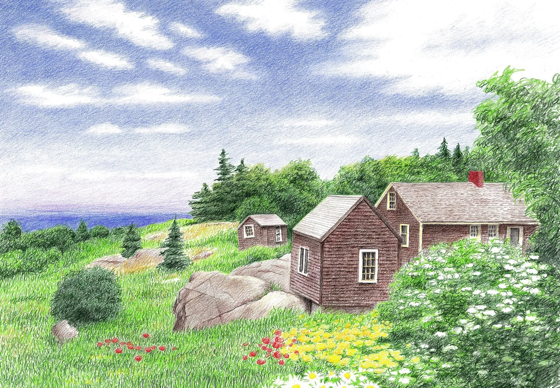 As a student, Alan was advised by a mentor to always take his art a step further. With the advent of digital photography and the disappearance of film, he decided to move on from the darkroom and illustrate Maine using pencil and paper.